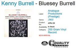 | De skivor som är pressade hos Quality Record Pressings är i världsklass, det vet alla som har en av deras skivor. Nu har inte alla skivor i Acoustic Sounds katalog dessa båda kvalitetsstämplar men det finns också andra bra producenter och presserier i USA. I katalogen finns så klart också skivor pressade i Europa (vi är nu på en amerikansk sajt i första hand tänkt för amerikanska kunder) men det blir onödigt dyrt att ta hem dessa från USA. | ![]() |